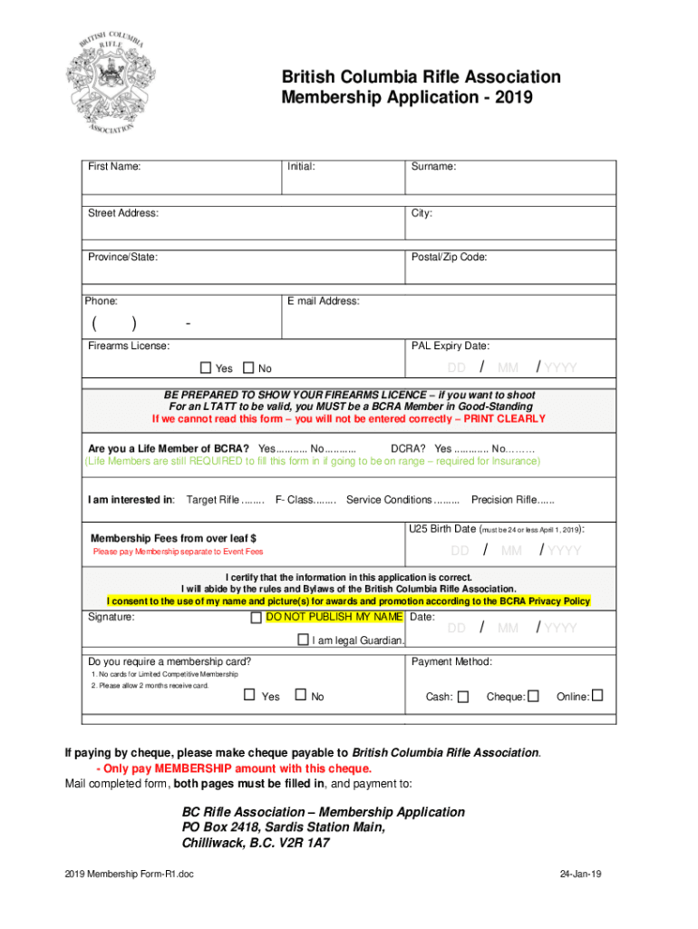 Get the free British Columbia Rifle Association Membership Application ...