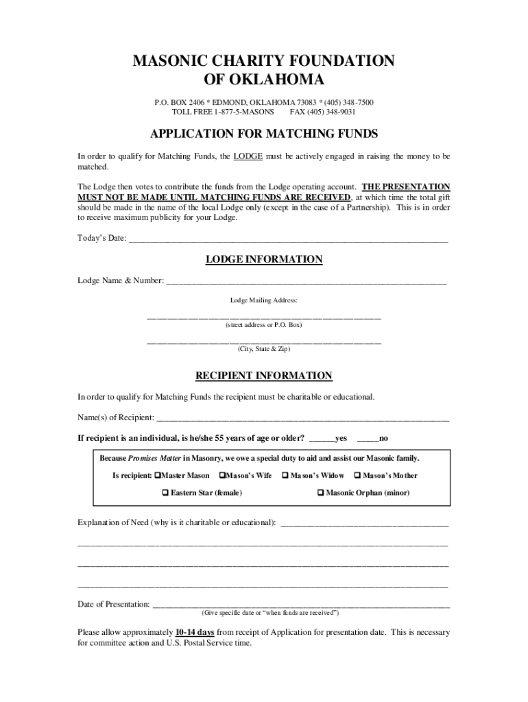 FAX (405) 3489031APPLICATION FOR MATCHING FUNDS