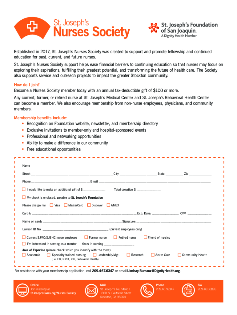 Get the free Nurses Society - St. Joseph's Foundation of San Joaquin ...