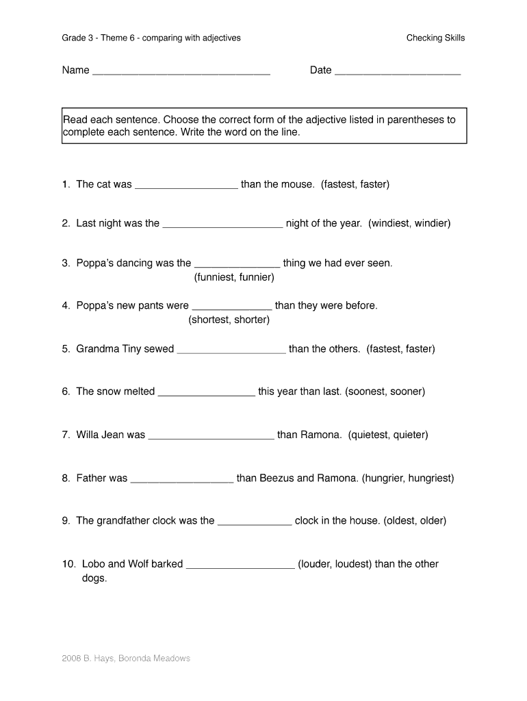 How to Fill Out the Grade 3 - Theme 6 - Comparing with Adjectives Worksheet Online
