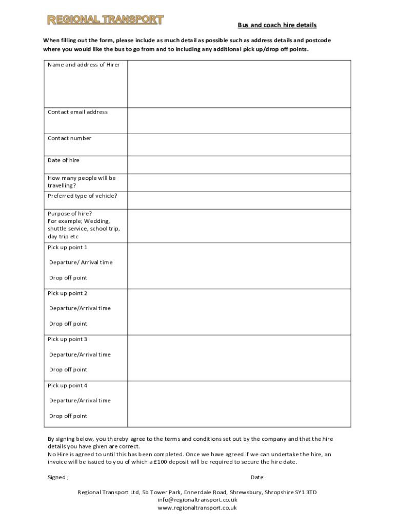 Fill out your bus and coach hire online with pdfFiller!