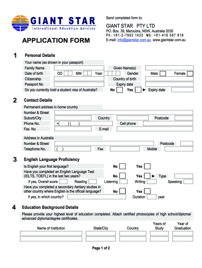 Get the free Application form. Study in Australia application form