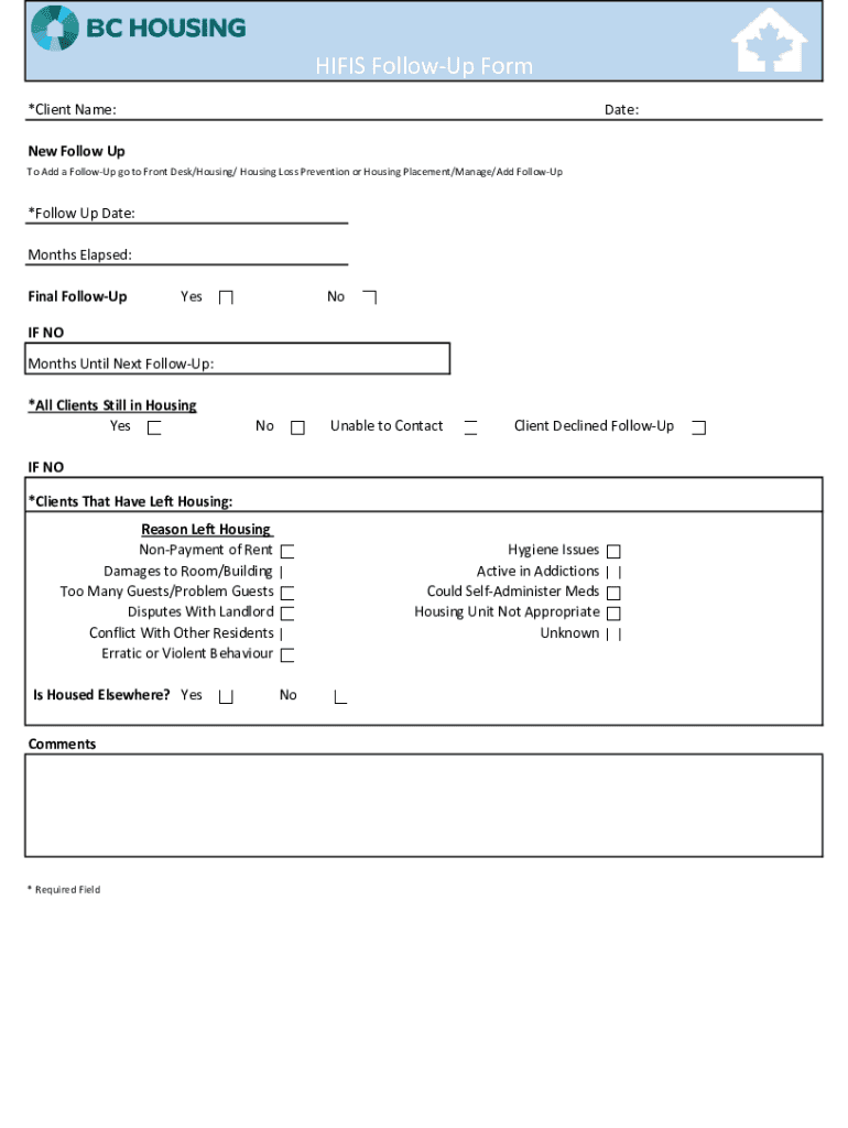 Get the free HIFIS Follow-Up Form