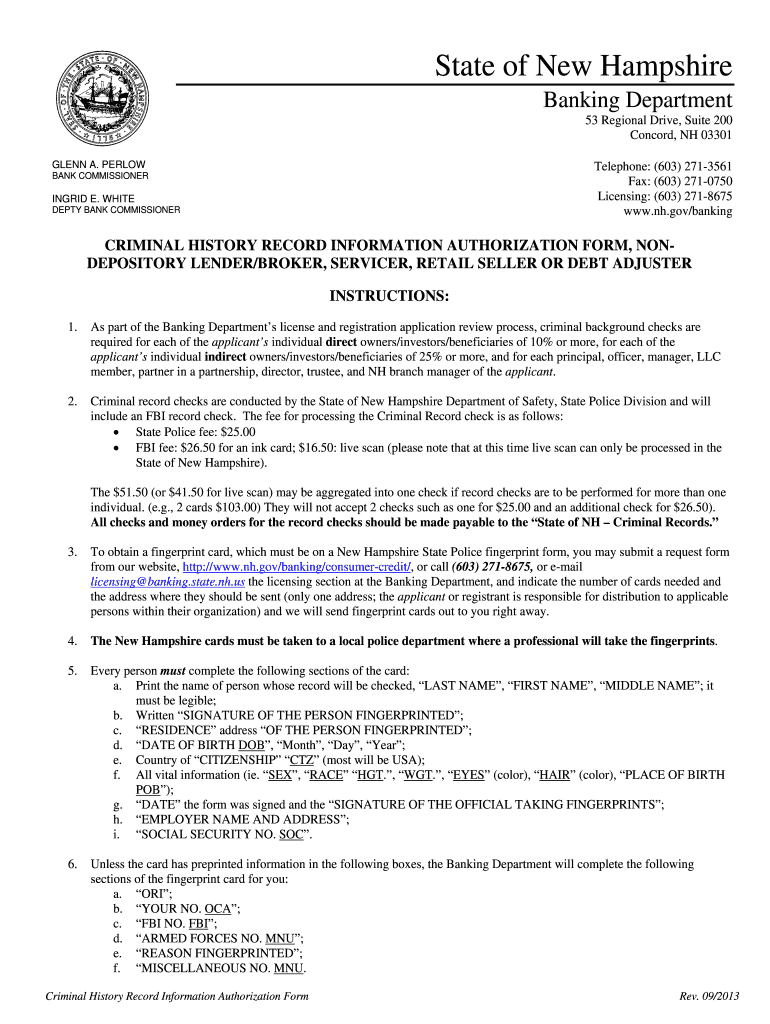 Get the free CRIMINAL HISTORY RECORD INFORMATION ... - NH . gov - nh