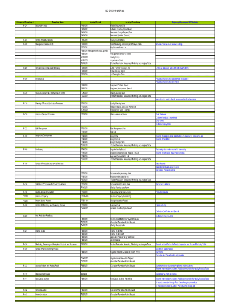 ISO 13485.2016 RMS MatrixReferenced Procedure #