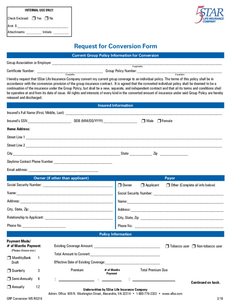 Get the free Request for Conversion Form - 5Star Life Insurance Company