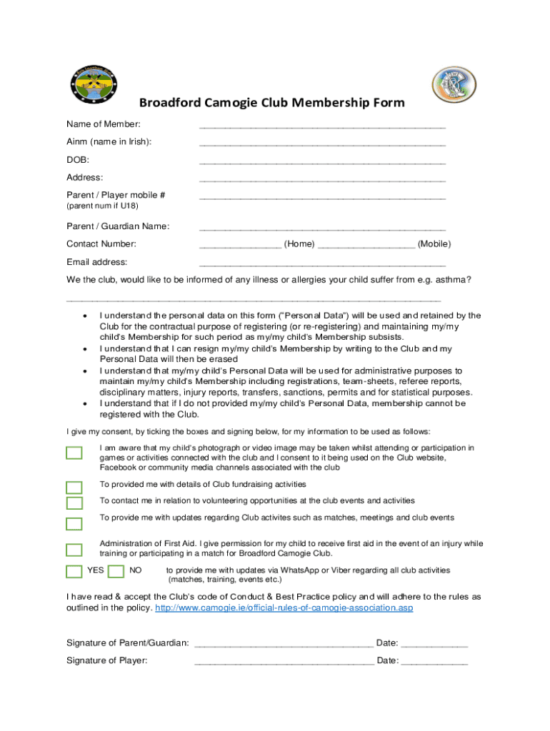 How to fill out broadford camogie club membership?