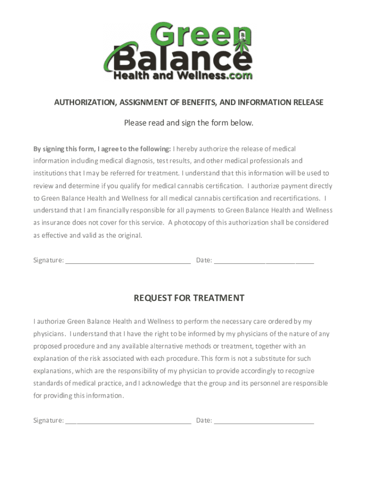 By signing this form, I agree to the following: I hereby authorize the release of medical