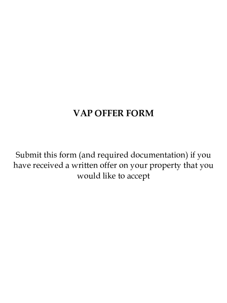 Indicate the specific VA offer you are interested in and provide any supporting documentation required.