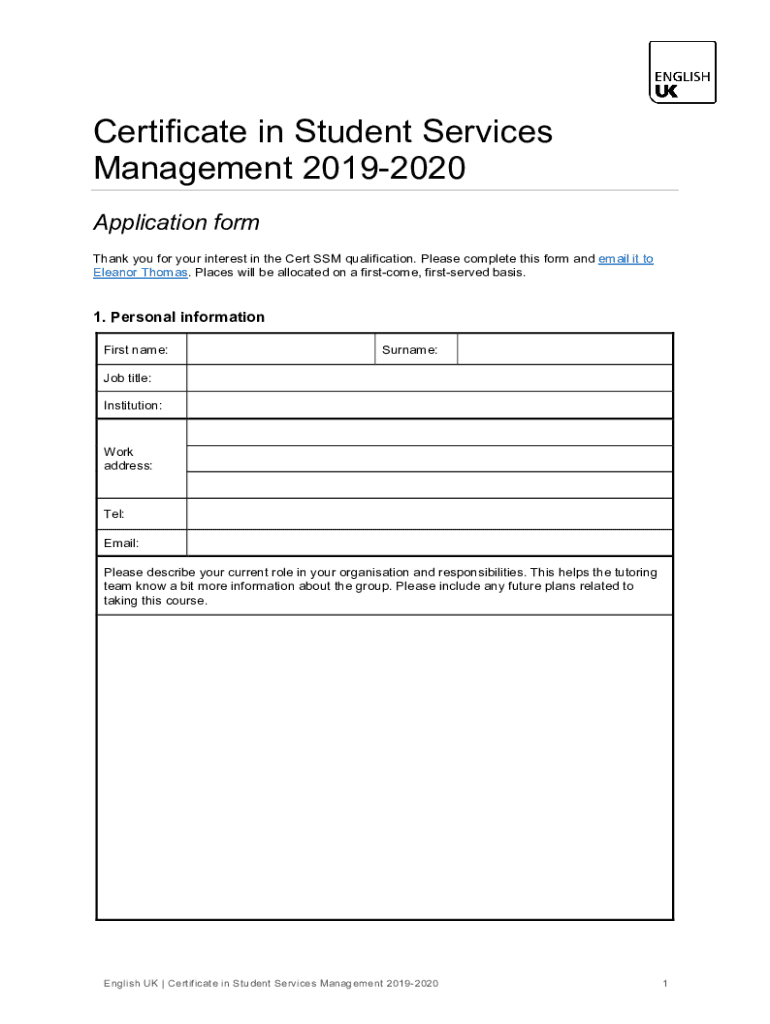 Thank you for your interest in the Cert SSM qualification. Please complete this form and email it to