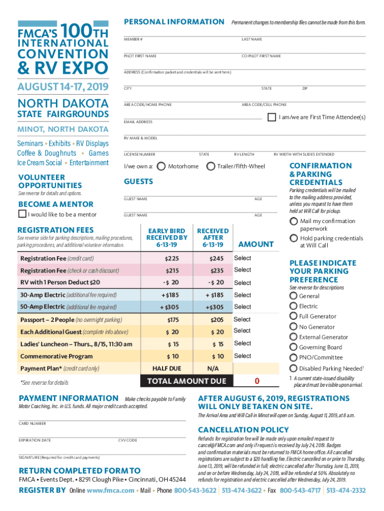 100 TH INTERNATIONALPERSONAL INFORMATIONFMCASCONVENTION& RV EXPOPermanent changes to membership files cannot be made from this form. MEMBER #LAST NAMEPLATE FIRST NAMECOPILOT FIRST HEADDRESS (Confirmation