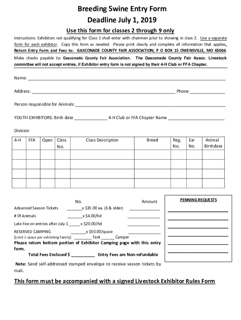 Get the free Breeding Swine Entry Form Deadline July 1, 2020