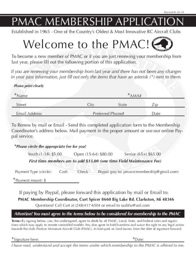 Revised 01.03.19PMAC MEMBERSHIP APPLICATION Established in 1965 One of the Countries Oldest & Most Innovative RC Aircraft ClubsWelcome to the MAC! To become a new member of MAC or if you are just