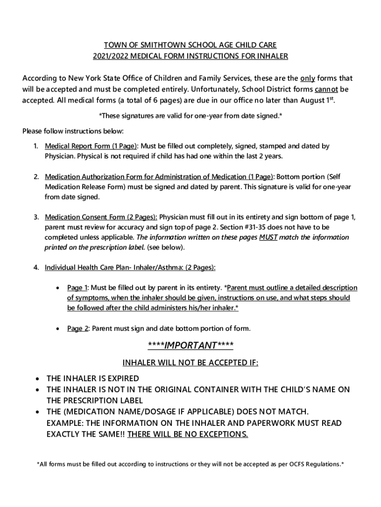 2021/2022 MEDICAL FORM INSTRUCTIONS FOR INHALER