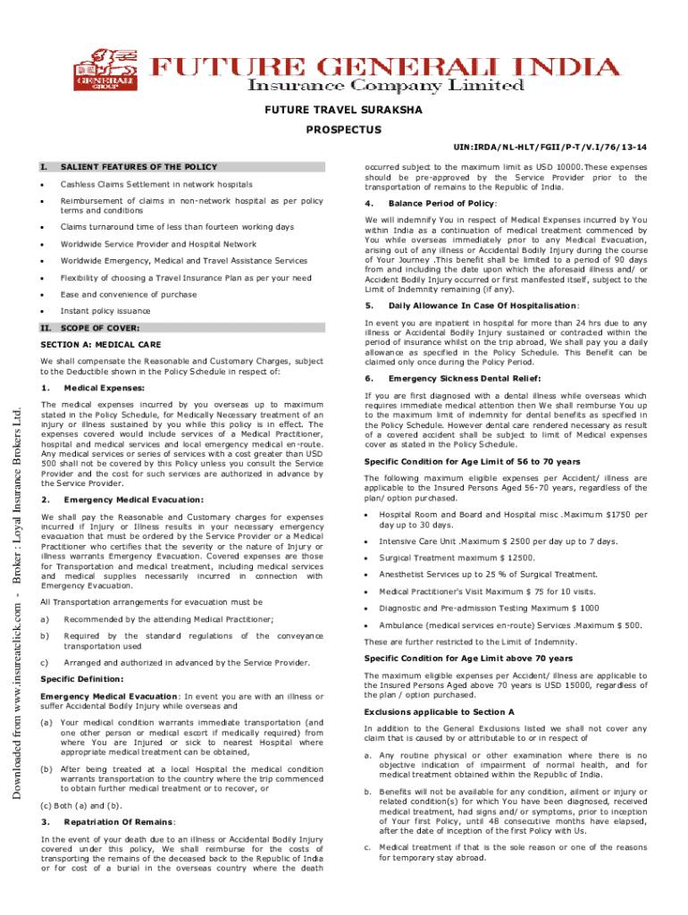 Fill out your download future-generali travel-suraksha proposal-form online with pdfFiller!