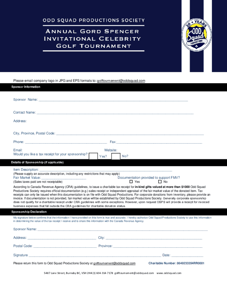 ODDSQUADANNUALPRODUCTIONS GORDINVITATIONAL GOLFSOCIETYSilent Auction / GiftinKindSPENCER CELEBRITYTOURNAMENTPlease email company logo in JPG and EPS formats to: golf tournament oddsquad.com Sponsor