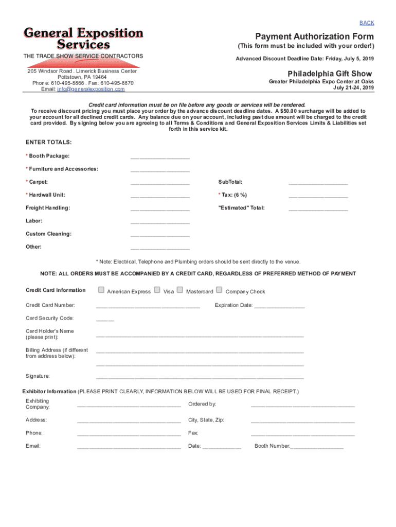 Get the free BACK Payment Authorization Form - Philadelphia Gift Show