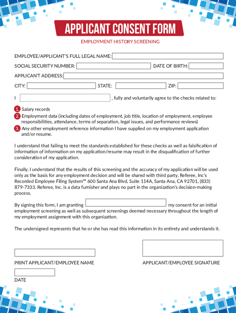 APPLICANT CONSENT FORM