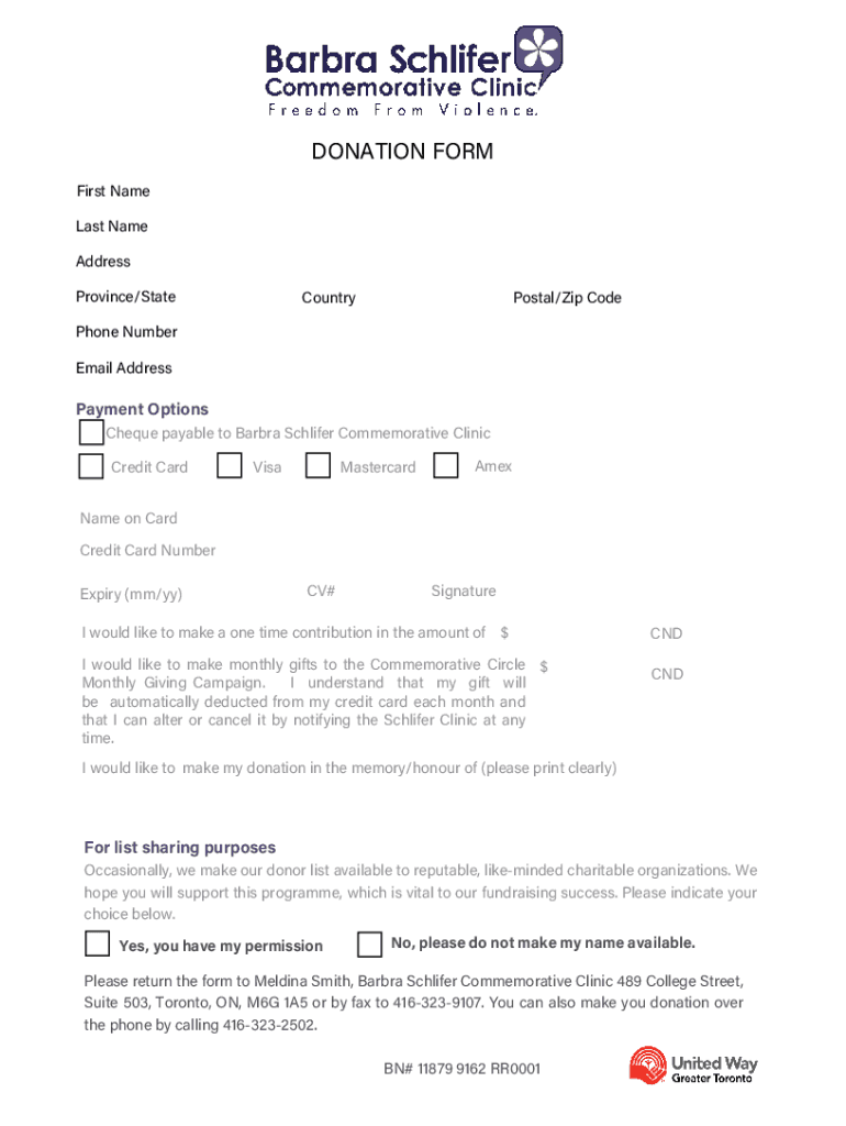 Check payable to Barbra Sch lifer Commemorative Clinic
