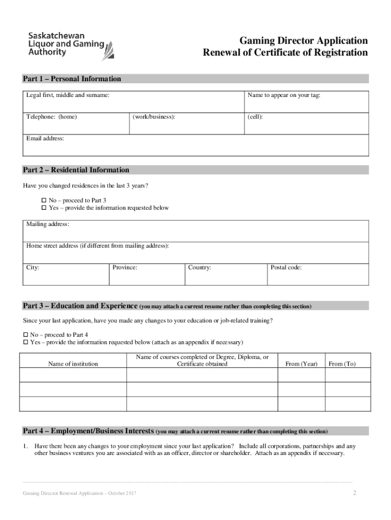 All gaming directors must use this form to apply for renewal of their certificate of registration.