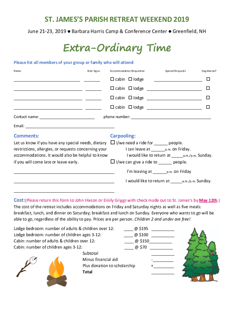 ST. JAMES PARISH RETREAT WEEKEND 2019 June 2123, 2019 l Barbara Harris Camp & Conference Center l Greenfield, Extraordinary Time Please list all members of your group or family who will attend: Ramekins