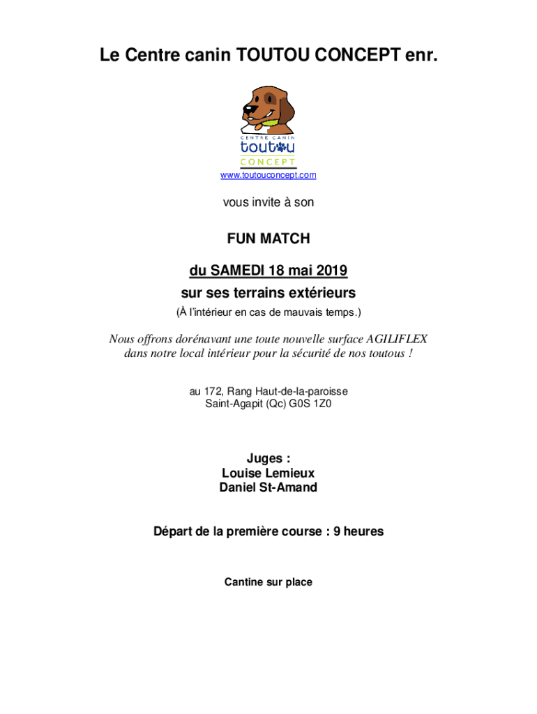 Le Center cabin TUTOR CONCEPT end.www.toutouconcept.comvous invite sinful MATCH du SAM EDI 18 Mai 2019 SUR SES terrains étriers (lintier en CAS de Mavis temps.) Nous affront dormant one route novella
