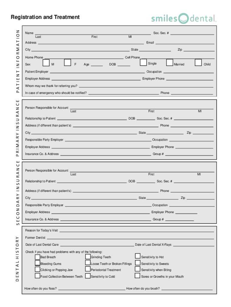 SECONDARY INSURANCE PRIMARY INSURANCEPATIENT INFORMATIONRegistration and Treatment