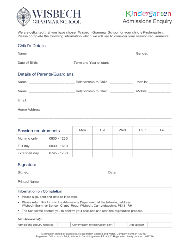 Edit your kindergarten admissions enquiry form form online