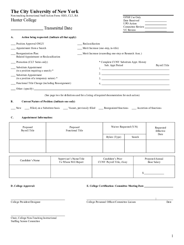 The City University of New Workwear FORMNonteaching Instructional Staff Action Form: HEO, CLT, ROOFS Use Only