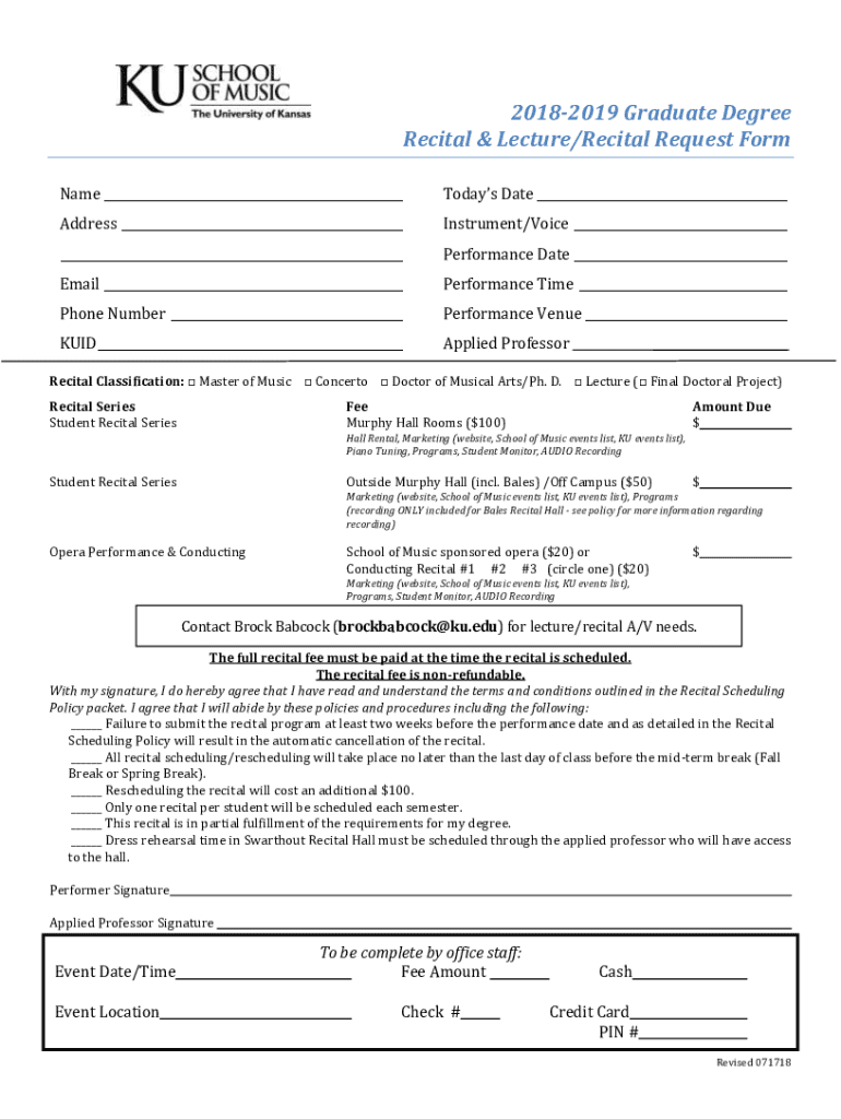 20182019 Graduate Degree Recital & Lecture/Recital Request Form Name Today's Date Address Instrument/Voice Performance Date Email Performance Time Phone Number Performance Venue KID Applied Professor