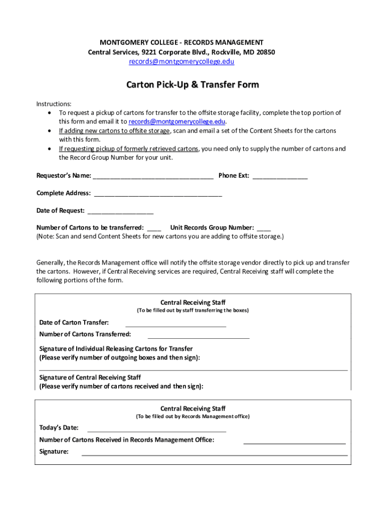 records@montgomerycollege.eduCarton Pickup & Transfer Form