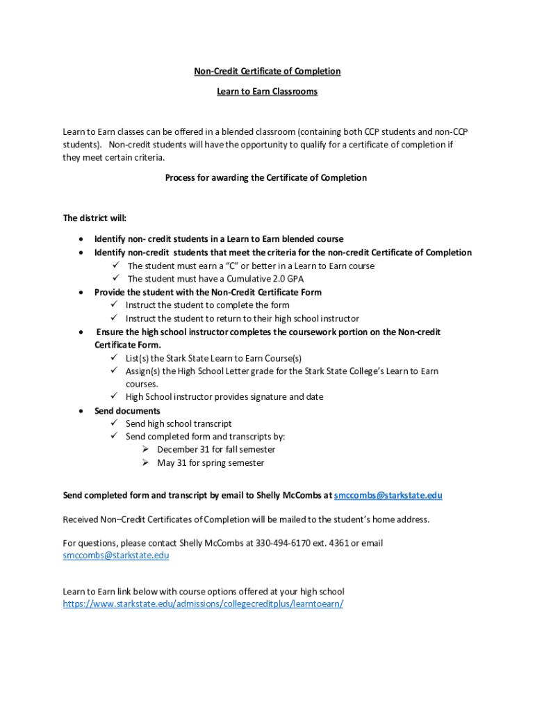 Get the free Non-Credit Certificate of Completion Learn to Earn ...