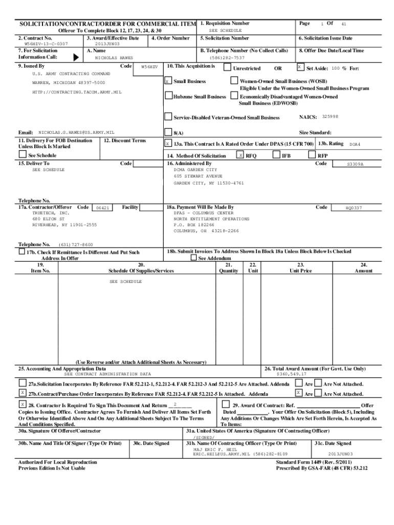 SOLICITATION/CONTRACT/ORDER FOR COMMERCIAL ITEMS 1. Requisition Number 2. Contract No. Offer or To Complete Block 12, 17, 23, 24, & 30 3. Award/Effective Date 4. Order NumberW56HZV13C03077. For Solicitation
