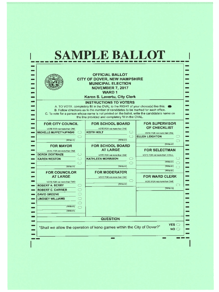 Get the free I I SAMPLE BALLOT - City of Dover, NH - Official Website