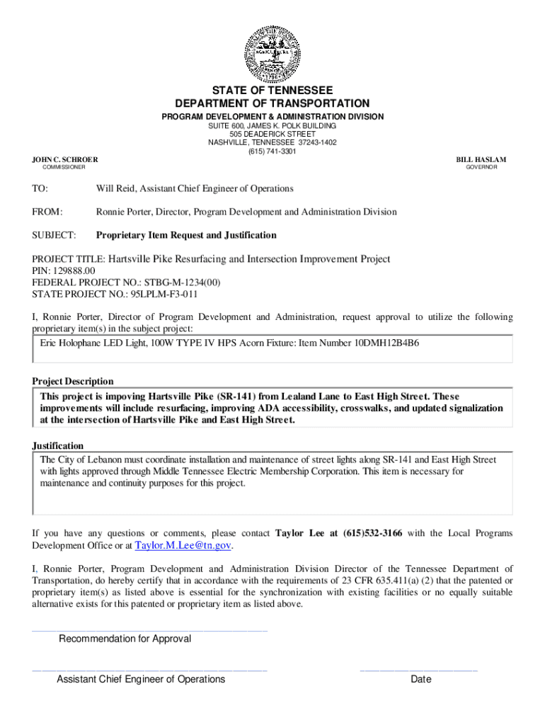 STATE OF TENNESSEE DEPARTMENT OF TRANSPORTATION PROGRAM DEVELOPMENT & ADMINISTRATION DIVISION SUITE 600, JAMES K. POLK BUILDING 505 FREDERICK STREET NASHVILLE, TENNESSEE 372431402 (615) 7413301 JOHN