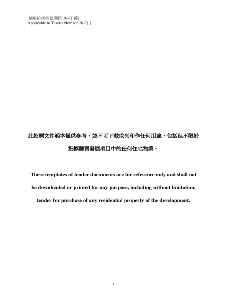 28T Applicable to Tender Number 28T These templates of tender documents are for reference only and shall not be downloaded or printed for any purpose, including without limitation, tender for purchase