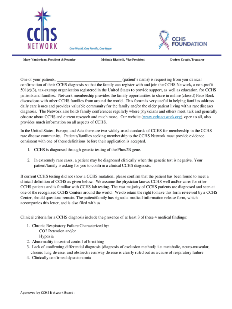 Mary Underlain, President & Founder Melinda Criscitelli, Vice President Desiree Couple, Treasurer of your patients, ___ (patients name) is requesting from your clinical
