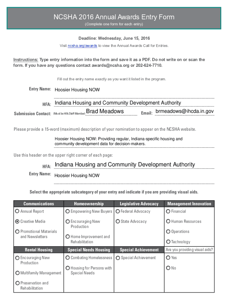 Get the NCSHA 2016 Annual Awards Entry Form - PDF Free Download