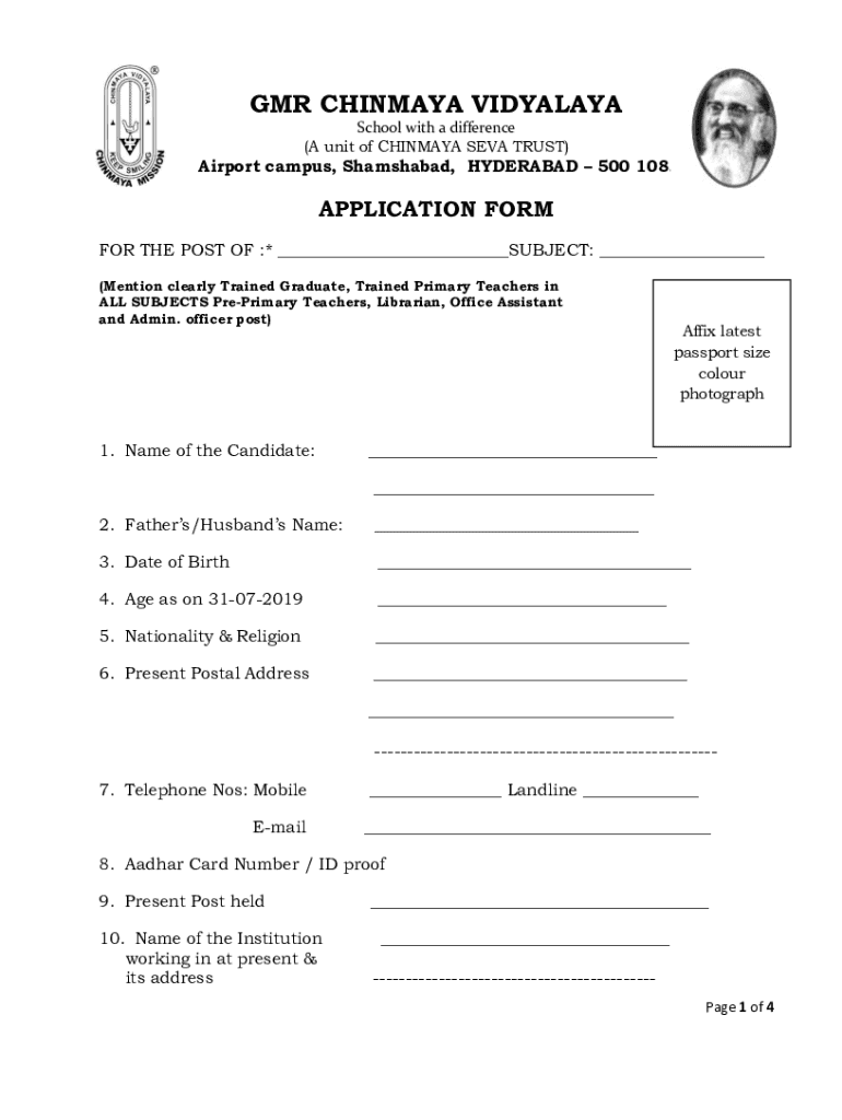 GMR CHINA HIMALAYA School with a difference (A unit of CHINA SEA TRUST)Airport campus, Shamshabad, HYDERABAD 500 108.APPLICATION FORM FOR THE POST OF :* SUBJECT: (Mention clearly Trained Graduate,