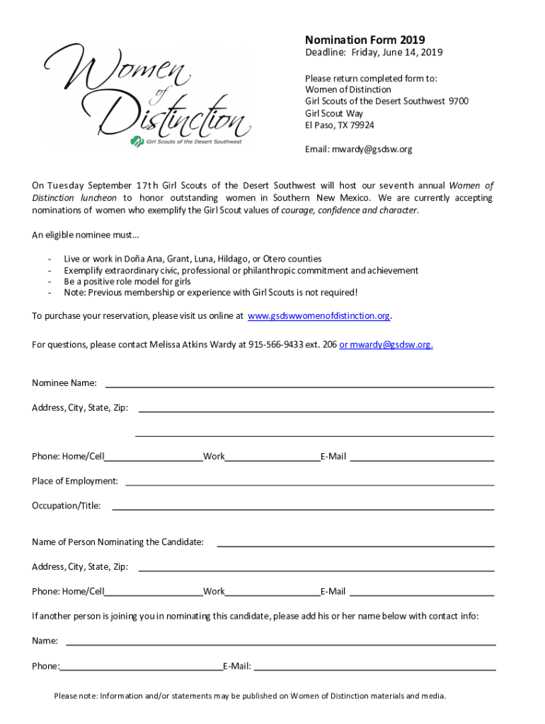 Nomination Form 2019Deadline: Friday, June 14, 2019,