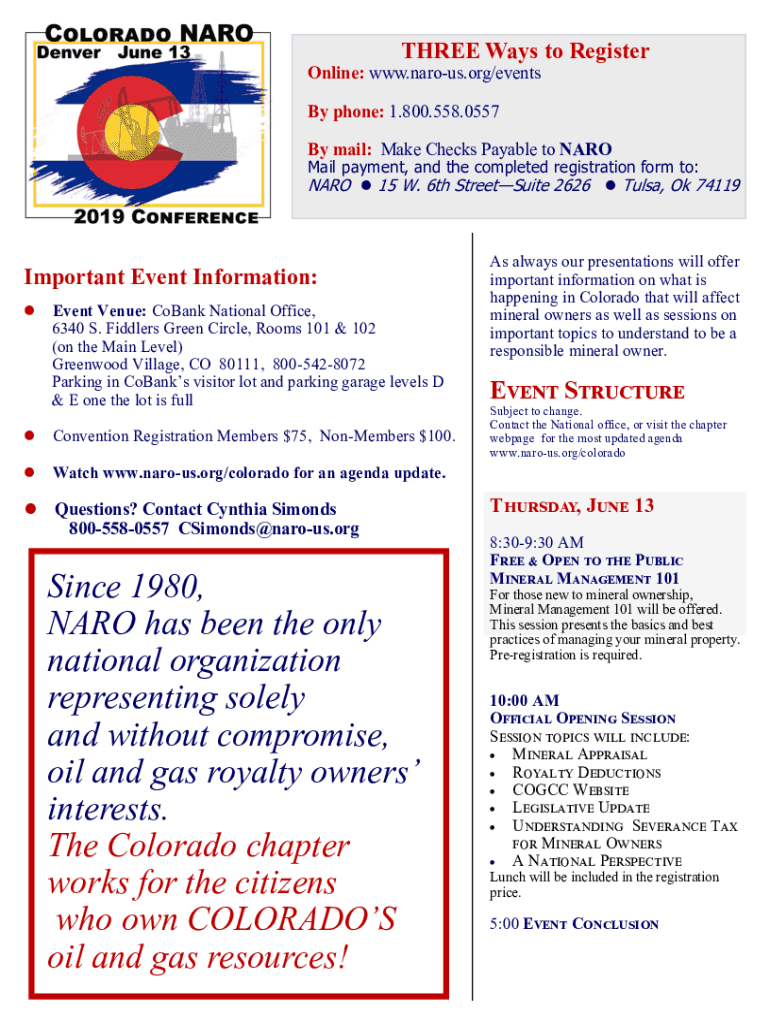 THREE Ways to RegisterOnline: www.narous.org/events By phone: 1.800.558.0557By mail: Make Checks Payable to Normal payment, and the completed registration form to: NATO 15 W. 6th Streetwise 2626 Tulsa,