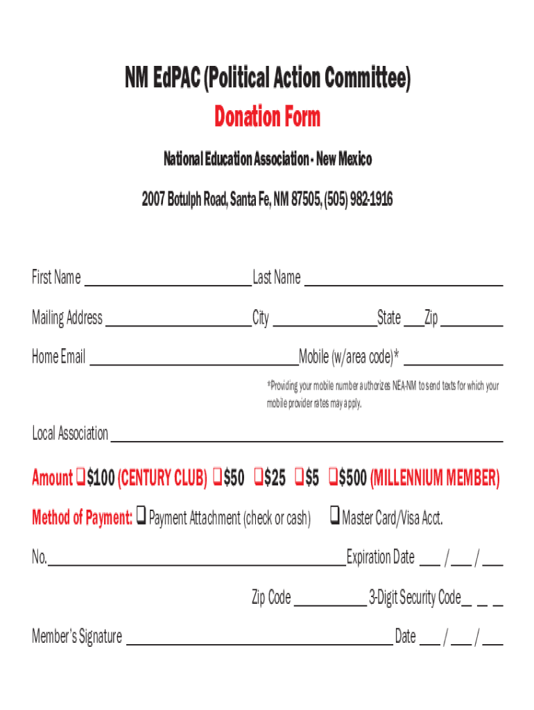 Get the free NM EdPAC (Political Action Committee) Donation Form