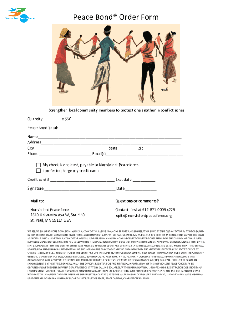 Get the free Peace Bond Order Form - Nonviolent Peaceforce