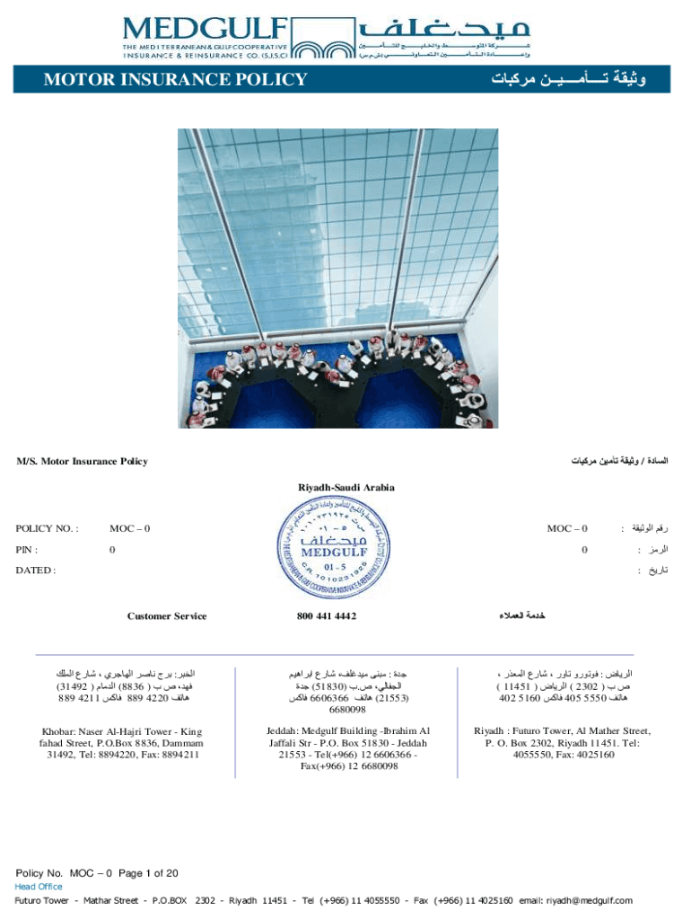 MOTOR INSURANCE POLICY / M/S. Motor Insurance Policy Riyadh Saudi ArabiaPOLICY NO. MOC 0PIN :0MOC 0: 0: : DATED :Customer Service : (31492) (8836) 889 4211