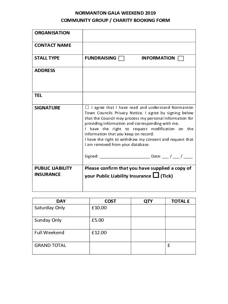 COMMUNITY GROUP / CHARITY BOOKING FORM