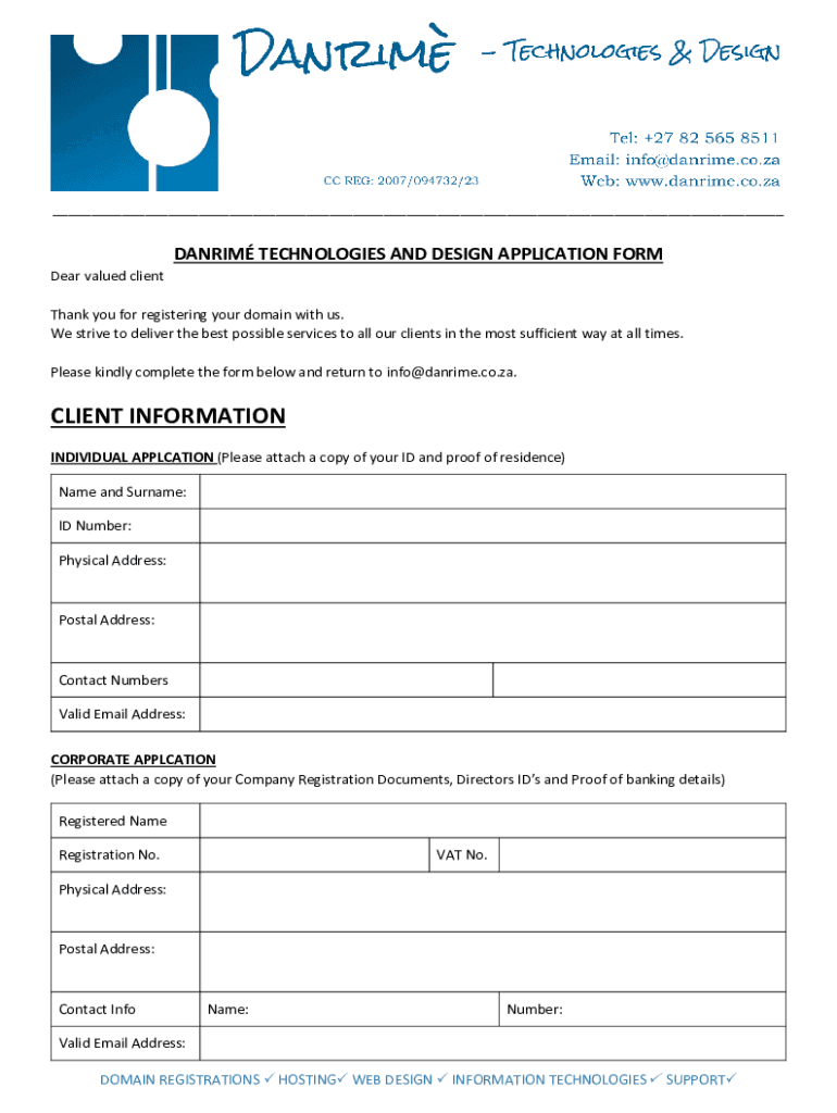 DENIM TECHNOLOGIES AND DESIGN APPLICATION FORM Dear valued client Thank you for registering your domain with us. We strive to deliver the best possible services to all our clients in the most sufficient
