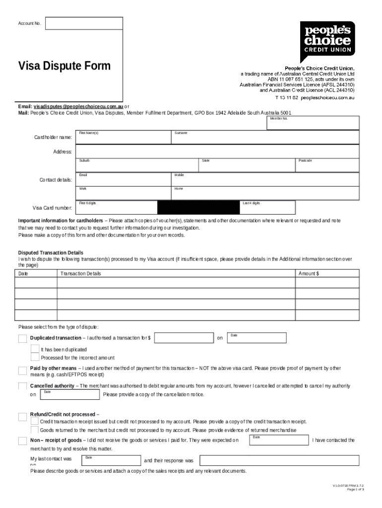 Instructions for the VISA DISPUTE - People's Choice Credit Union form