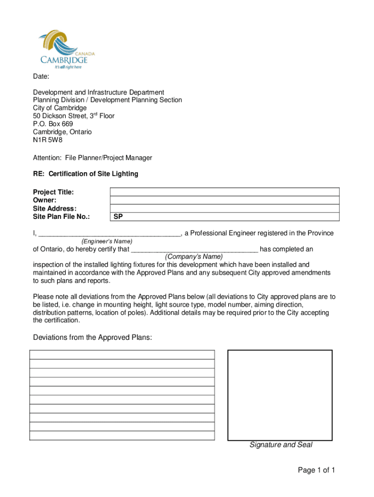 Date: Development and Infrastructure Department Planning Division / Development Planning Section City of Cambridge 50 Dickson Street, 3rd Floor P.O. Box 669 Cambridge, Ontario N1R 5W8 Attention: File