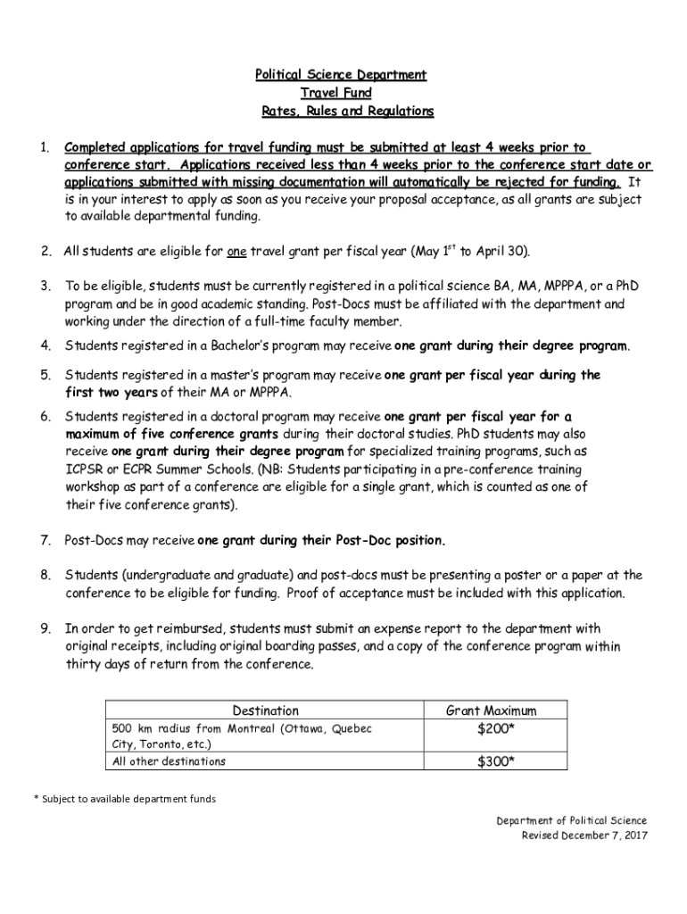 Get the free Political Science Department Travel Fund Rates, Rules and ...
