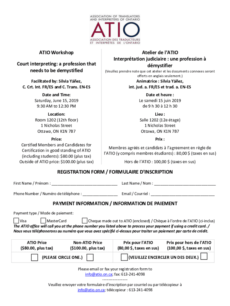 Get the free ATIO Workshop Atelier de lATIO Interprtation judiciaire ... - atio on